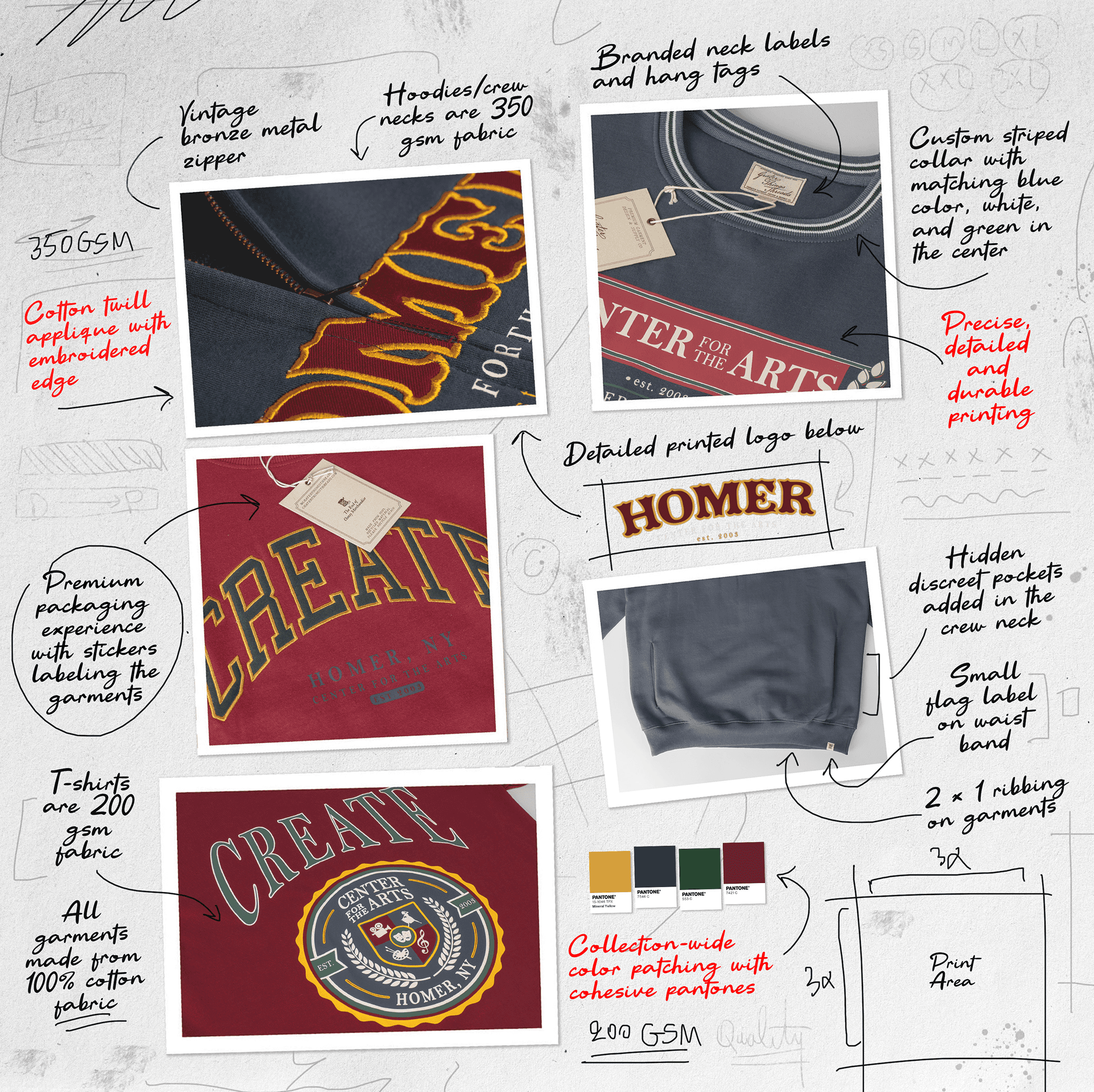 • We define your garment concept, materials, fit, color palette, and branding integration.